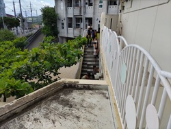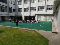遊戯室で遊んでいたクラスは外階段から避難し、